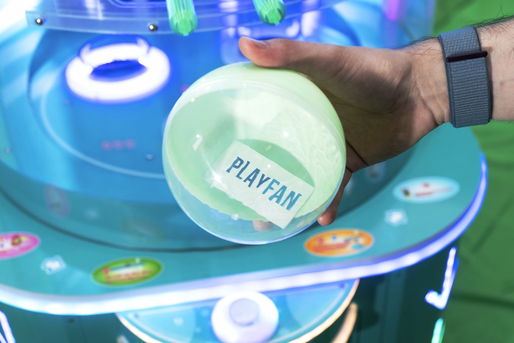 Es una máquina expendedora de gasha, que son cápsulas de plástico transparente en cuyo interior está el premio. Pero para obtener esa gasha, debes acertar con la bola de acero en el agujero correcto.