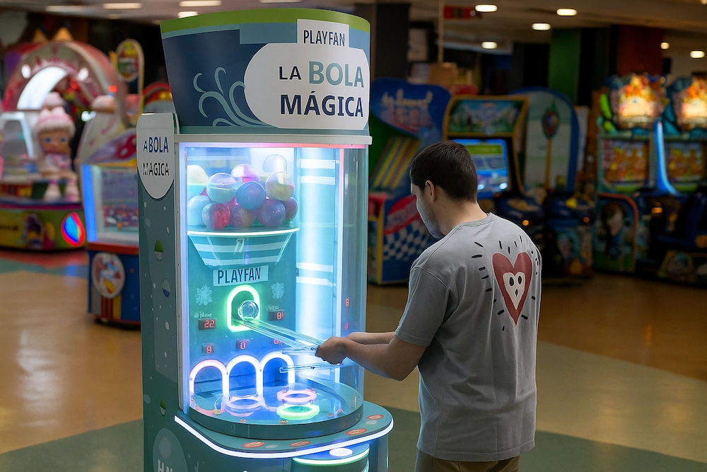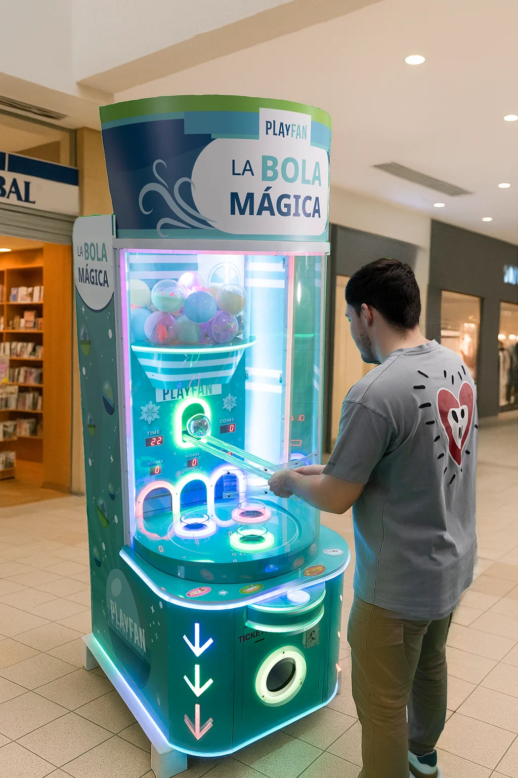 La Bola mágica es una máquina para jugar con una dinámica muy simple, introduce la bola de acero en el agujero adecuado. Es similar a una máquina de gashapones, pero en un formato más moderno. Dinamiza tu evento con este juego sencillo pero muy llamativo. El jugador tiene que tener la templanza para esperar el momento adecuado para dejar caer la bola y acertar en el hueco ganador. Cómo todas nuestras máquinas son personalizables y tienen multitud de posibilidades. Llámanos y nos ponemos en marcha.