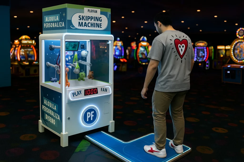 Es una máquina para mover el esqueleto, más concretamente las piernas. Cuanto más te esfuerces, más posibilidades tendrás de obtener el premio. Es una máquina de ganchos o grúa expendedora de premios, pero en versión moderna. Ganar o perder dependerá de ti. Es una máquina de juego ideal para eventos deportivos, ferias de corredor o marcas de deporte.